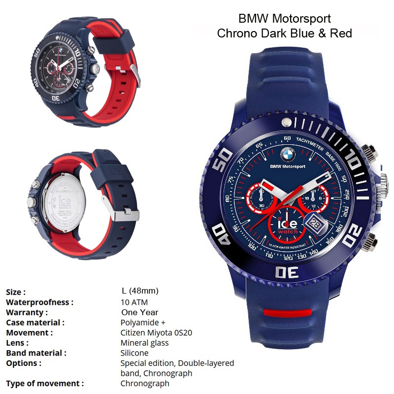 Ice Watch BMW Motorsport Chrono Sili Collection - Dark Blue \u0026 Red - Large 48mm | Shopee Singapore