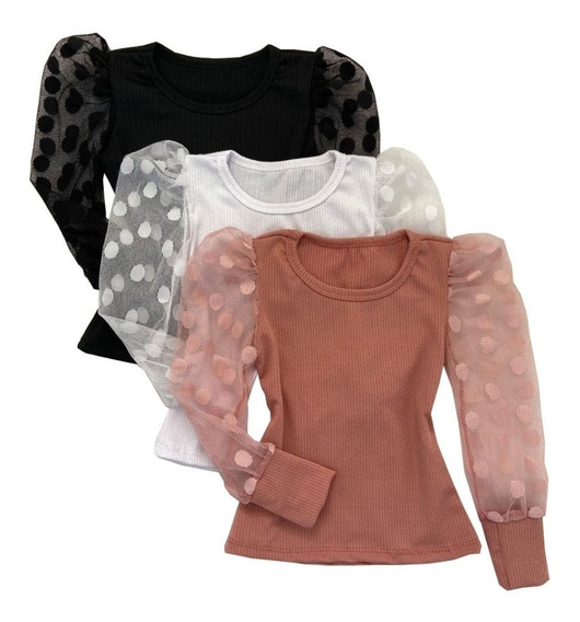 Blusa Infantil Feminina Manga Bufante Em Tule Atacado | Shopee Brasil