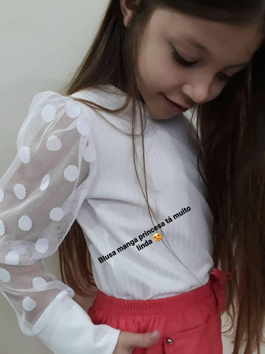Blusa Manga Princesa Infantil Na Cor Branca / Envio Imediato / | Roupa Infantil para Menina Nunca Usado 43449725 | enjoei
